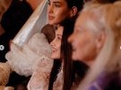 Она вышла на подиум в образе невесты. Платье из кружева идеально подчеркнуло ее прелести, но одновременно обнажила их.