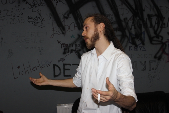 Кирилл Толмацкий, который запомнился большинству из поколения 2000-х, как рэпер Децл, сегодня по сравнению с другими представителями хип-хоп культуры настоящий аскет. На столе в гримерке только сок, кофе и бутылка качественного виски. На самом музыканту обычные рубашка и джинсы. Говорит мало, но исчерпывающе.