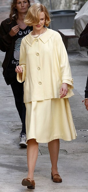 По слухам, режиссер байопика о легендарной Грейс Келли Оливье Даан запретил сообщать что-либо о деталях съемок, которые ведутся во Франции. Тем не менее фотографии со съемочной площадки уже просочились в сеть. На снимках можно увидеть Николь в амплуа княгини.