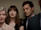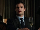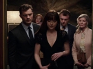 На экране исполнители главных ролей - Дакота Джонсон (Анастейша Стил) и Джейми Дорнан (Кристиан Грей) во время пикантной сцены в ресторане и лифте. Помимо них в фильме "На 50 оттенков темнее" (Fifty Shades Darker) снялись Ким Бейсингер, Белла Хиткот, Тайлер Хэклин и другие.