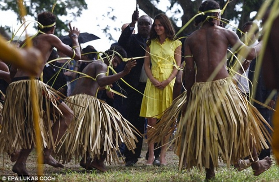 На выходных пара прибыла на Соломоновы острова. Приезд герцогской четы стал настоящим праздником для местных жителей. Поприветствовать Уильяма и Кэтрин, которые "плыли" на импровизированном каноэ, вышло около 70 тысяч человек.