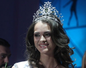 Олеся Стефанко учится ходить на костылях. В этом году она заняла второе место на конкурсе "Мисс Вселенная". Три недели назад девушка сломала правую ногу.