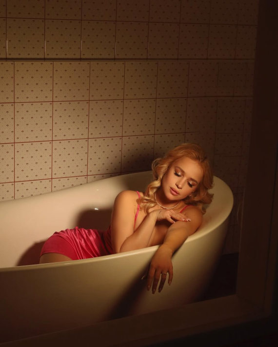На кадрах, опубликованных в Instagram, волонтер позировала в отеле и ванной.