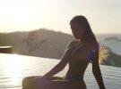 На этот раз модель позировала в бикини оливкового цвета, красуясь соблазнительными прелестями и тонкой талией.