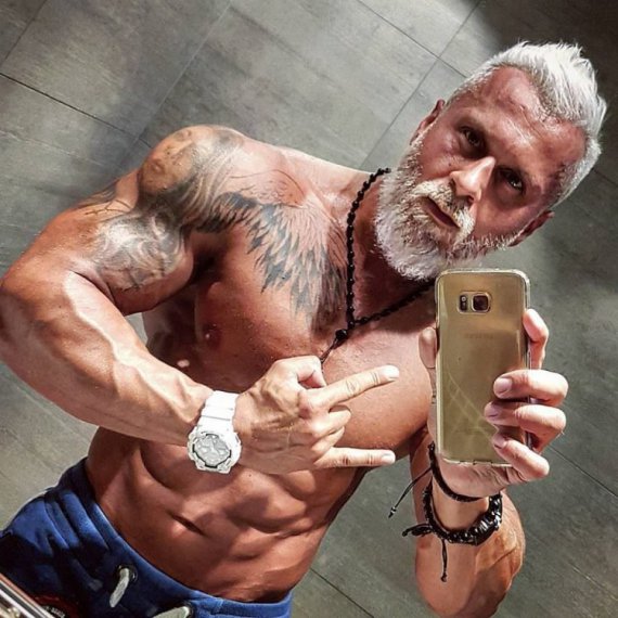 Поляк Павел Ладзяк (Pawel Ladziak) стал звездой в социальных сетях только после того, как умышленно "состарил" себя, как минимум, на 10 лет. Он добился успеха из-за умелого использования заметного контраста между своим накачанным телом и седыми волосами на голове. Таким образом, благодаря искусственной седине 35-летний "Польский викинг" стал выглядеть на 60 лет.