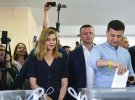 Жена украинского гаранта для голосования выбрала деловой темно-синий комбинезон с пуговицами до пояса. Волосы первая леди оставила распущенными. На лице Зеленской было минимум макияжа.