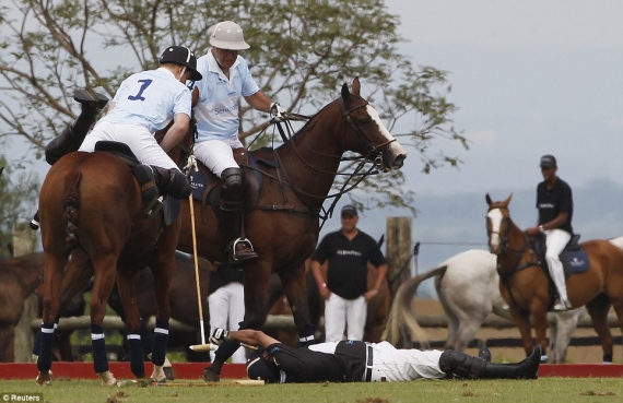 27-летний принц быстро соскочил с коня, чтобы помочь американскому бизнесмену Башу Кази. Соперник принца упал с лошади и потерял сознание после резкого столкновения.