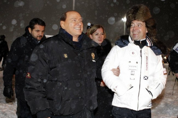 На горнолыжном курорте Красная Поляна под Сочи состоялась встреча Дмитрия Медведева и Владимира Путина. Туда российские лидеры прилетели на один день на отдых. Здесь же произошла встреча с бывшим премьер-министром Италии Сильвио Берлускони, давним другом Владимира Путина.