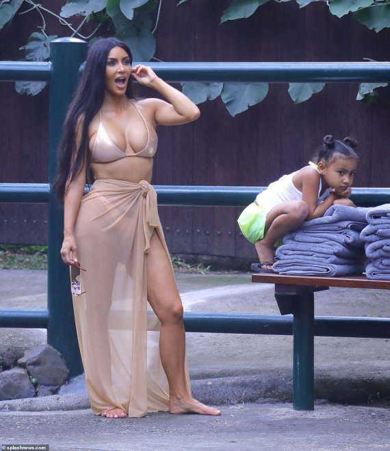 На фото, сделанных репортерами, Ким и Кортни катаются на слонах в бикини.