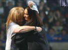 "Я мечтала об этом, и мечта моя сбылась, - сказала Пугачева, обращаясь к переполненному залу и объявила: "София Ротару". Певицы вместе спели песню из репертуара скандально известного дуэта t.A.T.u. - "Нас не догонят". Завершив исполнение, Пугачева и Ротару поцеловались.