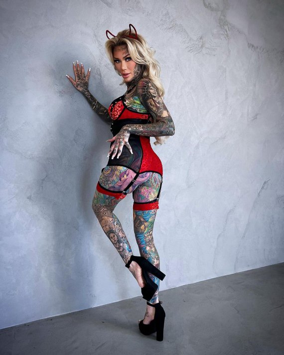 Самая татуированная женщина Великобритании снялась в прозрачном белье