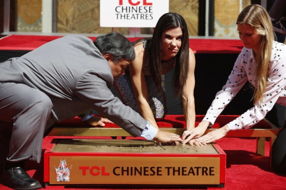 Сандра Баллок оставила свои отпечатки рук и ног на голливудском бульваре парка Chinese Theatre.
