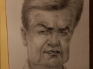 "Рисовал его 2 раза. Те рисунки выбросил - жена сказала, что он совсем на себя не похож. На третий раз попал в яблочко. По лицу Литвина видно, что он - очень тонкий человек, умеет уживаться с любой властью, со всеми может найти общий язык", - подчеркнул художник.