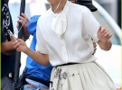 В последнее время 32-летняя актриса нередко появляется в винтажном наряде своей героини на фото. Кэти Холмс также взяла свою дочь Сури Круз на съемочную площадку. Наверное, чтобы было веселее.
