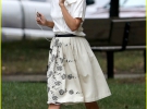 В Огайо сейчас проходят съемки ее нового фильма и актриса в костюме героини, которую играет и в наушниках от своего iPhone гуляла аллеями радостно танцуя.
