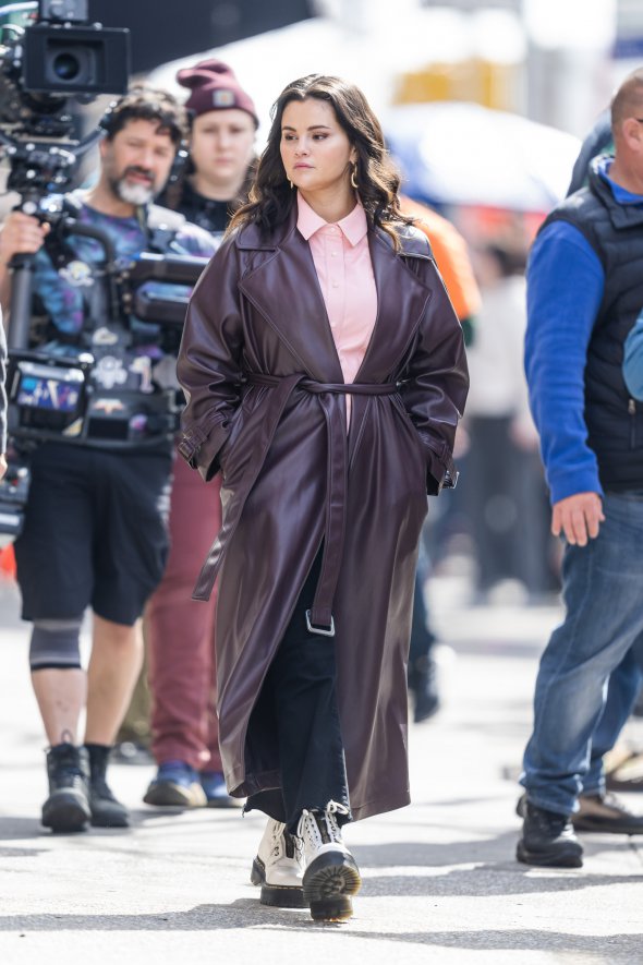 Американская певица и актриса 30-летняя Селена Гомес появилась на съемках третьего сезона сериала "Убийства в одном здании" в стильном тренче от украинского бренда.