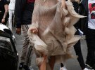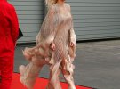 Красавица выбрала футуристическое платье, которое при резком порыве ветра обнажило ягодицы звезды.