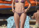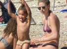 Красавица в крошечном бикини развлекалась на пляже с детьми.