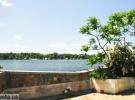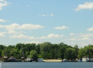 В отгороженной от Днепра водоеме плавают дикие утки и 3 лебеди.