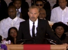 Прощальной речи Кевина Костнера, ее партнера по фильму "Телохранитель", предшествовала любимая песни Уитни I will always love you. Она была создана для этой голливудской истории любви. Костнер вспомнил, как трепетно относилась Уитни к своей роли, как порой ее одолевали страхи, неуверенность и сомнения, достаточно ли она хороша. "Нам повезло быть с ней", – признался актер.
