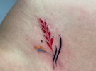 Репер Аlyona Аlyona набила на правой ключице красно-черный колосок.