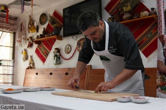 На столах раскладывают деревянные доски, заносят капусту и фарш. Повар ресторана собирается готовить самый маленький голубец, который войдет в Книгу рекордов Украины.