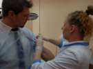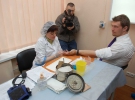 Далее врач меряет давление Конюшоку, затем берет у него на анализ кровь и просит пройти для сдачи в соседний кабинет. Спортсмен сдает 350 мл. Врачи дают ему 13 грн. Столько платят донору за одну сдачу крови.