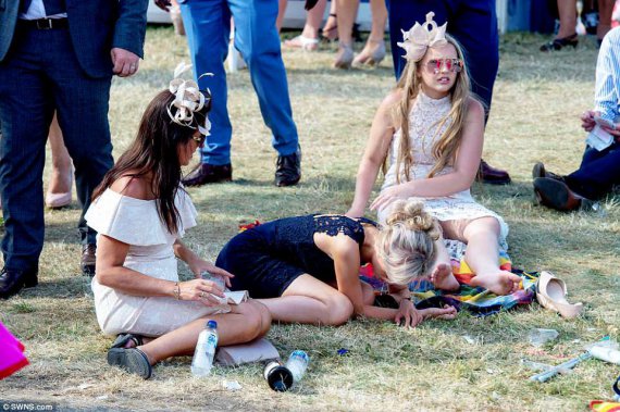 В Ladies Day не все дамы выдержали погодные условия и действие алкоголя. Некоторые из красавиц забыли о своих изысканных образах и уснули прямо на траве. Кто-то снял обувь на каблуках, а некоторые устроили фотосессию.