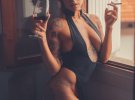 Кроме этого, модель примерила черное боди с кольцом на шее и глубоким декольте.