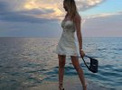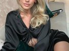 На фото Никитюк позировала в черном облегающем платье длины миди с экстримальным разрезом и открытым декольте.