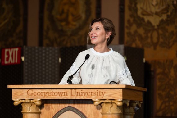 Первая леди Елена Зеленская завершила рабочий визит в США лекцией в Джорджтаунском университете. Он является старейшим католическим учебным заведением Америки. Там учатся будущие лидеры страны.