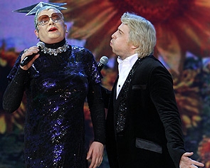 На недавнем концерте в Киеве "золотой голос России" работал в паре с Веркой Сердючкой. Увидев Николая Баскова, та начала отпускать в адрес натурального блондина едкие шутки.