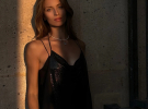 Перед камерой предстала в блестящем платье длины мини с глубоким декольте.