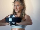 На видео Энистон позирует перед камерой в обтянутых спортивных образах, обнажив упругий пресс.