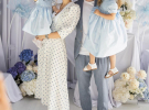 Его возлюбленная предстала перед камерой в принтованном белом платье и трендовых босоножках. Лея со старшей сестрой Евой были одеты в голубые платья.