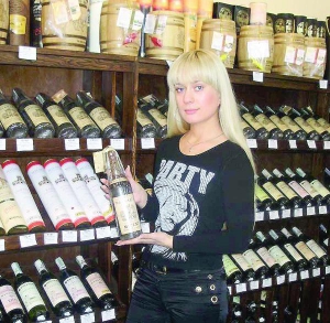 — Дорогие вина просто так не пьют. Сначала их нужно процедить через фильтр, — Олийнык осторожно берет с полки бутылку. Показывает осадок на дне. — Вино смакуют, наслаждаясь ароматом. Еще не приобрели ни одной бутылки из коллекционных. Берут преимущественно подарочные вина — по 200–300 гривен.
