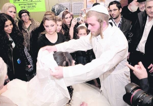 11 марта в Умани паломники-хасиды вступили в брак на могиле раби Нахмана. 20-летняя Сара Фельге Эмояль и 19-летние Исраель Равич познакомились во время паломничества в прошлом году. Девушка живет в Париже, молодой - из американского Чикаго. Хасиды верят: если обручиться на могильном комплексе, семья будет жить счастливо.