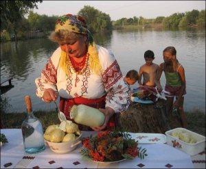 — Праздник проводим во второй раз, — рассказывает организатор Валерий Костюк, 50 лет. В свой комплекс "Корчма" впервые пригласил прошлым летом. — В этом году гостей больше. Кроме вареников, участники приготовили еще и другие украинские блюда: пирожки, деруны, домашнюю колбасу, мясо, пекли караваи.