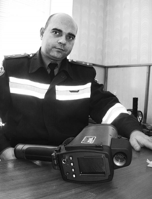 — Хранится в специальном противоударном кейсе, — продолжает инспектор. — Он делает одновременно фото и видео, устанавливает дату и время. Это своего рода сочетание цифрового фотоаппарата, видеокамеры, лазерного измерителя скорости и спутниковой навигации. Фиксировать можно любой объект на расстоянии до 1 километра 200 метров. Особенность этого радара — он использует не радиочастоту, а лазерный луч.