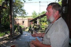— Вышел утром перекрестился да и все, — говорит скульптор, открывает калитку. — Живу здесь от теплого Алексея до Покровы. Навожу порядки. Дочка в Киеве, сын с невесткой могут приехать на шашлыки, а жена приболела. Когда Нарбут был жив, помогал по хозяйству. Дружили лет 20.