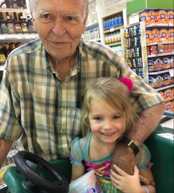 Она стояла в тележке и радостно кричала кому-то: "Привет, старый человек! Сегодня мой день рождения!". Она обращалась к старику с каменным лицом и кустистыми бровями. Прежде чем я смогла одернуть ее или провалиться сквозь землю, "старый человек" обернулся к нам. Даже если он подумал, что у меня невоспитанный ребенок, он не показал этого. Выражение его лица смягчилось, и он ответил: "Ну привет, маленькая принцесса. И сколько лет тебе исполнилось?".
