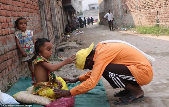 Жители индийской деревни Джаландхар поклоняются 6-летнему мальчику как воплощению индуистского божества. Праншу родился с деформированным лбом и нижними веками, он не может ходить. Мальчика водили к местному врачу через год после рождения, но тот не смог поставить окончательный диагноз и предложить лечение.