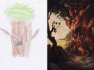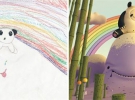 С помощью фотошопа и юмора отец "оживил" рисунки своего 6-летнего сына и завел страничку в Instagram, где сначала публикует его творения, а затем показывает, как выглядят герои детских картинок глазами взрослого человека.