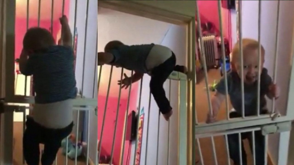 В сети появилось забавное видео, на котором малыш шустро перелазит через заборчик из детской комнаты. При этом он мило улыбается.