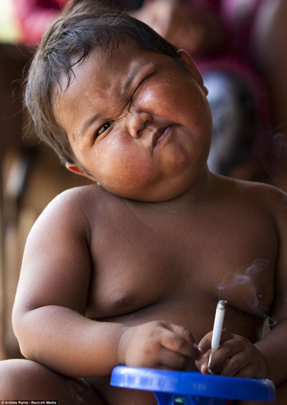 В 2010 году двухлетний Алди Ризал из маленькой деревушки в Индонезии стал международной сенсацией — фото с ним облетели весь мир и вызвали огромное возмущение. На них малыш сидит в игрушечном автомобиле и курит.