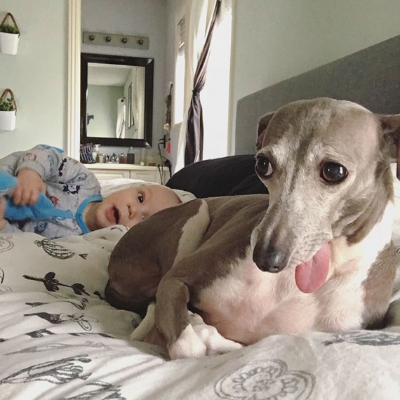 Сара рассказывает, что сейчас сыну 7 месяцев и Вэйзи любит его больше, чем ее. За дружбой собаки и ребенка можно понаблюдать в Instagram.