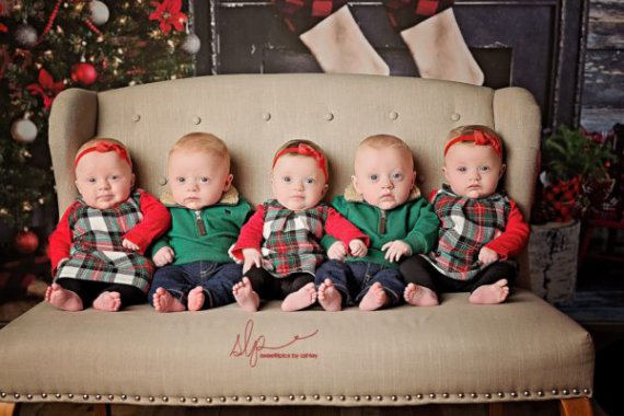 Квинтет появился на свет в мае этого года в результате кесарева сечения. Вес детей колебался от 800 г до кг, поэтому малышей сразу перевели в отделение интенсивной терапии. Родители смогли забрать малышей домой только в июле. И это будет первое Рождество в жизни пяти близнецов.