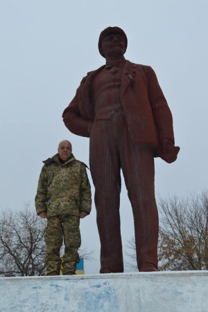 На фото - моя скромная персона у вождя всемирного пролетариата в Станице Луганской ровно год назад (февраль 2015-го). Этот Ленин уже поверженный "дуновением ветра", а Закарпатье все никак не распрощается с коммунизмом.