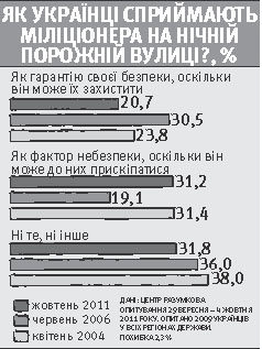 Милиционер скорее придерется, чем защитит, если встретиться с ним ночью на безлюдной улице. Так считают украинцы, опрошенные Центром Разумкова в сентябре–октябре. Приблизительно такие же данные опроса социологи опубликовали в апреле 2004-го, в последние месяцы президентства Леонида Кучмы.