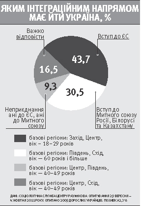 Украинские больше поддерживают евроинтеграционное направление украинской политики, чем курс на присоединение к Таможенному союзу с Россией, Белоруссией и Казахстаном. Это подтверждают результаты социологического опроса, который в начале октября провел Центр Разумкова.